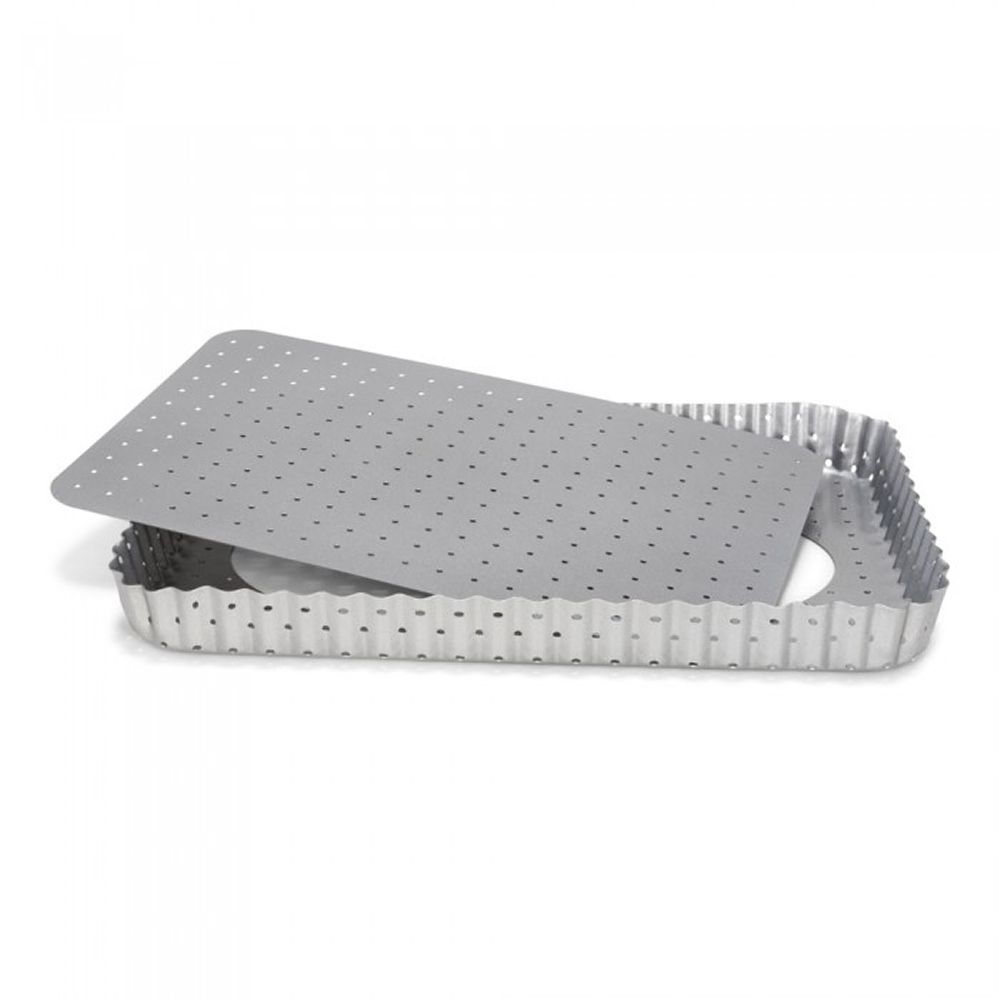 Dimensioni Tortiera Rettangolare con Fondo Microforato e Removibile: 32 cm x 22 cm.